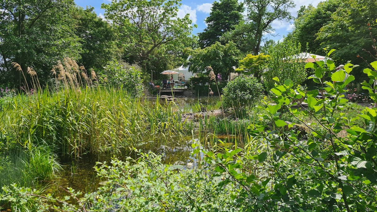 As you step into this magical space, you are greeted by a cozy ambiance that feels simultaneously vibrant and serene. The highlight of your visit might be the delightful swimming pond, where you can relax under the sprawling canopy of a Catalpa tree. Here, the gentle rustle of leaves and the comforting sound of water create a backdrop for your culinary adventure.
